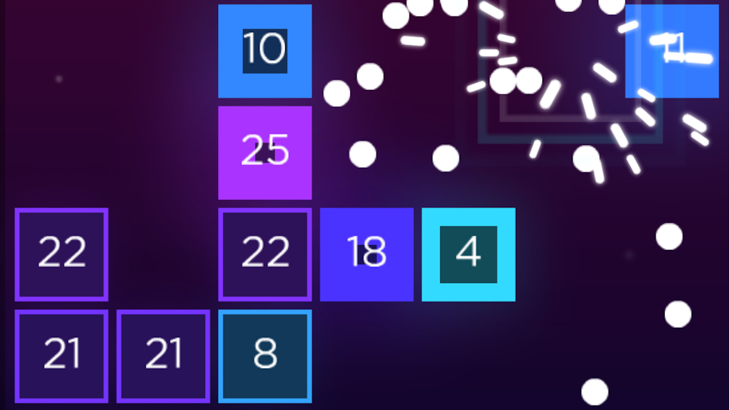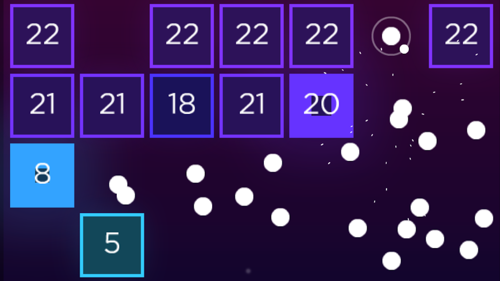 Tucked away on the official AARP website – the acronym formerly stood for “American Association of Retired Persons” – is an oasis of small arcade-style games; browser experiences perfect for an aging audience uninterested in metaprogression or buildcraft. Of these, Ballistic encapsulates the style: it reframes Breakout as turn-based actions, where the player shoots a stream of balls that ricochet off of walls and destructible blocks, waiting for each ball to land back at the bottom before firing the next volley. Instead of separate levels with fixed arrangements, all the blocks in the playfield shift down one row in an implicit grid after each turn, with the game ending when a block reaches the line the player shoots from. At the same time, a new row of blocks appears one row below the top, with at least one gap left for the player to sneak their shots in. Over time, this breaks the playfield up into two sections: dense blocks at the top, and stragglers creeping towards the bottom on every turn. A smart shot attempts to clean up both areas by trapping balls in a cave on the always empty top row behind multiple rows of blocks. Doing this while having the balls trickle down to the bottom section as they exit the cave keeps the playfield clean. Additional wrinkles prevent this loop from staling: ball pick-ups add to the number you shoot on every turn, and the “health” of the blocks (how many hits they can take before breaking) scale alongside your reserve, occasionally throwing in double-health blocks to ensure that some blocks actually survive down to the second layer. The simplicity of these aspects, the intuitive physics system, and a prominent scoring system (the game’s only goal, with a leaderboard prominently displayed) demonstrate why even nondescript browser games can still showcase the elegance of the medium.