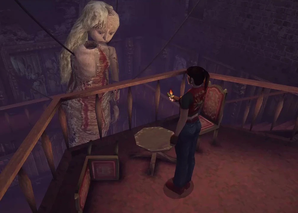 This framing is needed to enjoy Code Veronica; if you prefer classic Resident Evil combat and mechanics, there’s nothing for you here. Combat regresses from Resident Evil 3, with only the quick turn and the absolute ammo smorgasbord returning from that game. The newly buffed knife, which now hits multiple times in a single swing, opens up a focus on close-quarters combat, but once you’ve looped one zombie, you’ve looped them all, and the game has no problem throwing zombies at you where the other games would have moved on to more interesting enemies. The new “special” enemy of this game, the bandersnatches, exhibit the cartoon-y Dreamcast style the worst, looking like the queso-drenched Clayface equivalent to Resident Evil 1’s Muppet-esque hunters (although these return as well). The bandersnatches also trade the terrifying speed of hunters or lickers for a lumbering walk with an arm-stretch attack, making perhaps their only scary moments those when they can leap up to balconies and other places you wouldn’t expect them to follow you to. In the same vein, the story is silly, offensive, and more baffling than frightening, and it clearly paves the way for the overblown camp mysticism of the 4/5/6 trilogy. Code Veronica shines most when accepted as the total realization of the PC adventure game DNA latent in original Resident Evil. Just be warned that its strengths might not last between multiple playthroughs.